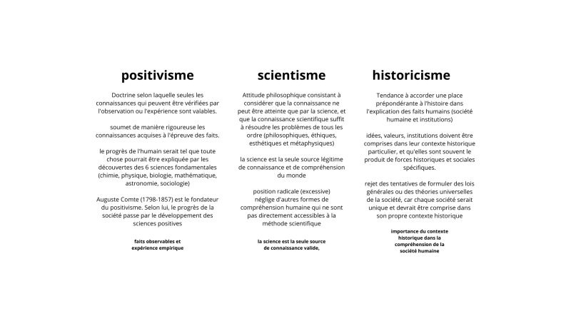 | Sociologie | comportements généraux irréfléchis / conditionnés (Durkheim et ses statistiques sur le suicide) | singulier, libre, réflexion |